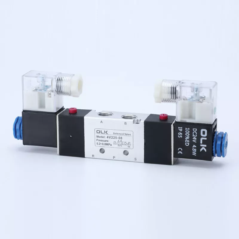 Valve de solénoïde OLK 4V200 5 Way, 5/2 Wayand 5 / 3way Pneumatique Solenoïde. Les ports d'admission et d'échappement sont divisés en G1 / 4 et G1 / 8. Le débit de gaz qui passe convient aux systèmes pneumatiques de taille moyenne. Il peut être intégré à la base de l'île Valve pour économiser l'installation de composants de contrôle. Les scénarios les plus utilisés comprennent des machines d'emballage automatiques, des machines à soude, des machines de tri automatique, etc. Ouleikai 4v210-08 est composé de matières premières en alliage d'aluminium de haute qualité et d'une excellente durabilité, avec une capacité de production annuelle jusqu'à deux millions. C'est juste notre produit populaire star