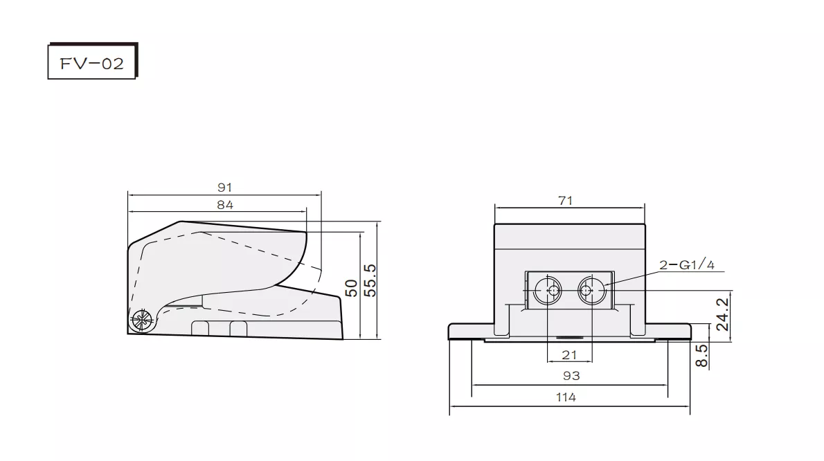 FV-02 Vanne à pédale pneumatique 3 voies Paramètres généraux