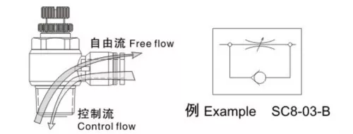 La fonction de régulateur de débit SL est réalisée grâce à une bague d'étanchéité unidirectionnelle. La photo (a) montre l'étranglement de l'échappement et la photo (b) montre l'étranglement de l'entrée. La différence vient uniquement du sens d'installation de la bague d'étanchéité.