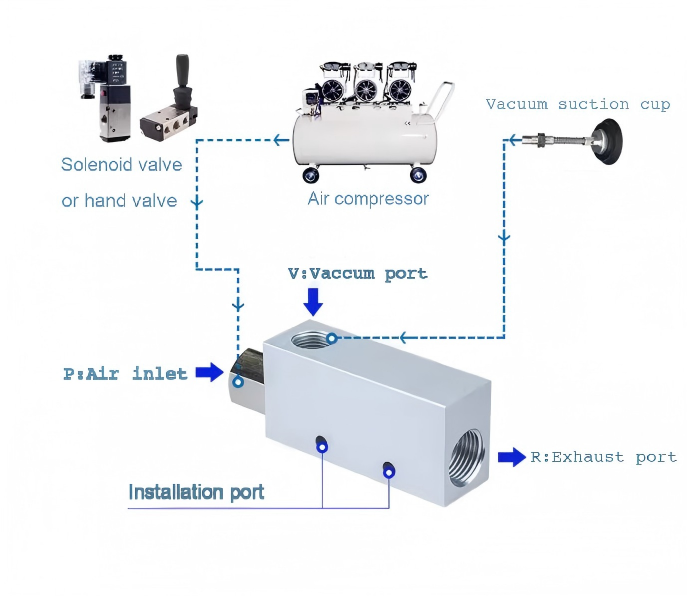 3. Aucune interférence électrique : le générateur de vide n'utilise pas d'énergie électrique pour son fonctionnement, mais fonctionne à l'air comprimé et n'est donc pas sensible aux interférences électriques. Il est conseillé de l'utiliser dans des environnements sujets aux explosions.
