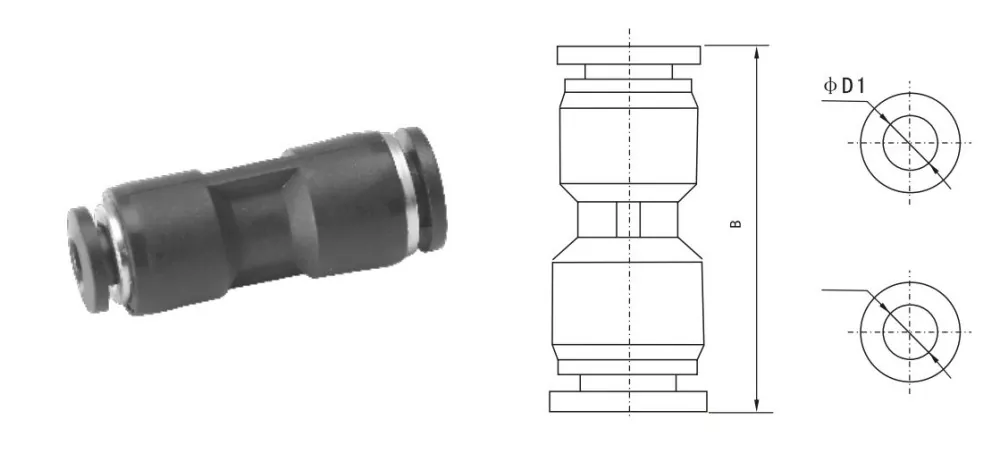 PU relie le même tuyau d'air des deux côtés, PG relie le tuyau d'air à différents diamètres des deux côtés
