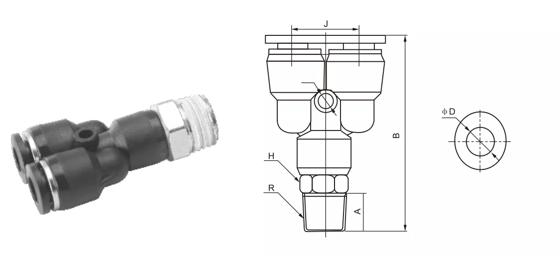 Le raccord de tube push-in de type px y est la conception push-to-connect. Installation. Et la voie de la trajectoire aérienne principale est directement connectée. Couramment utilisé pour la séparation des gaz ou les pipelines auxiliaires dans les systèmes pneumatiques.