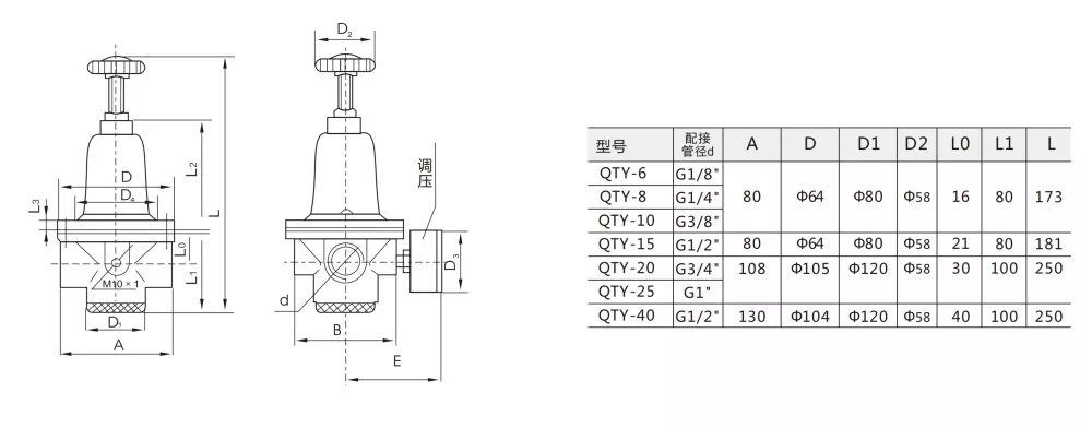QTYH : Régulateur haute pression (haute pression), capable de gérer une pression d'entrée plus élevée, adapté aux sources d'air haute pression ou aux applications industrielles spéciales.